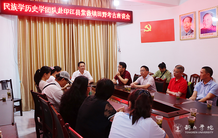 上午,调研组一行在紫薇镇政府三楼会议室召开校政田野考古座谈会。会上,紫薇镇党委副书记田宏进从世界自然遗产梵净山保护、生态文明建设、传统村落保护、红色文化遗址、文化遗产与非物质文化遗产保护利用等方面介绍了紫薇镇的基本概况,提出了深化文化遗产资源普查、传统村落与红色文化遗址研究等方面的合作意向。梁正海、杨兴英、杨峻岭、李锦伟、邵启富等人先后介绍了我校在服务地方文化建设、历史学专业人才培养、文物与博物馆专业硕士学位授权点筹建等方面的基本情况。双方就如何进一步深化校政合作展开了建设性研讨。