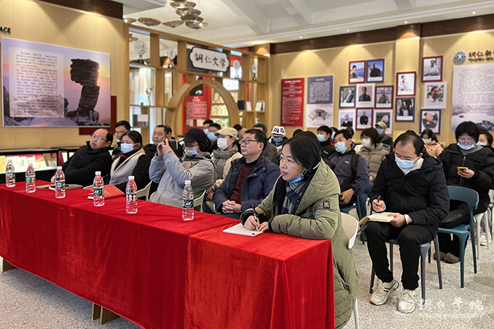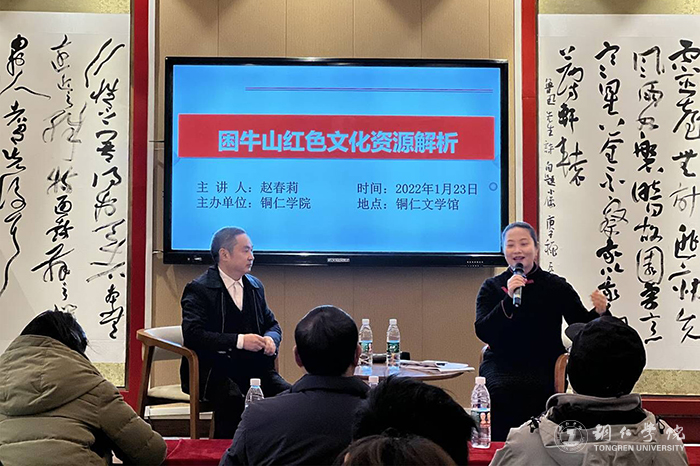 为充分挖掘困牛山红色文化资源,彰显学校办学特色,把困牛山红色文化作为重大课题进行打造,1月23日下午,我校邀请铜仁市“困牛山红军壮举”知名讲解员赵春莉在铜仁文学馆举行了《困牛山红色文化资源解析》讲座。铜仁市政协原秘书长赵幼立,我校马克思主义学院党委书记、院长皮坤乾教授,人文学院党委书记、院长孙向阳教授,教育学院党委书记崔德虎教授,艺术学院院长李洁教授,以及校内外文艺家和红色文化专家共40余人参加讲座。讲座由崔德虎主持。