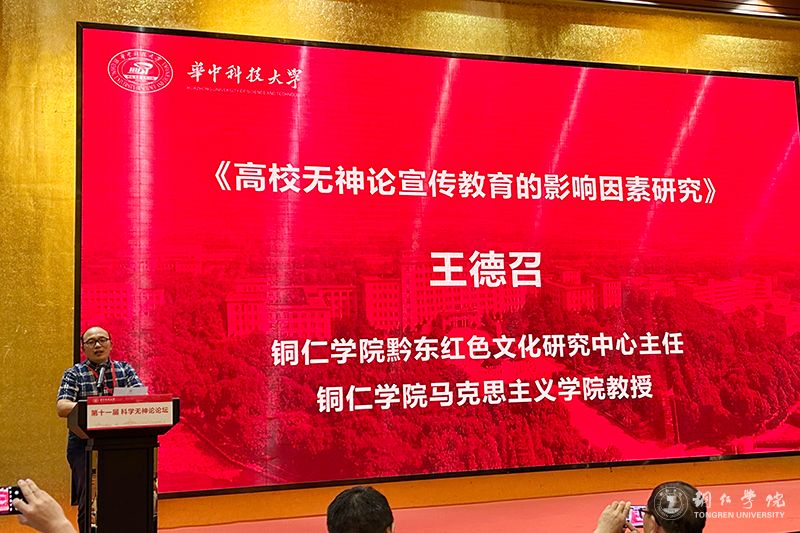 9月16日,第十一届科学无神论论坛在武汉召开。此次会议由中国社会科学院马克思主义研究院和华中科技大学联合主办,中国社会科学院科学与无神论研究中心、科学与无神论学会、华中科技大学马克思主义学院承办。我校黔东红色文化研究中心主任王德召教授应邀参加会议,并在第一分论坛作了《高校无神论宣传教育的影响因素研究》的报告。