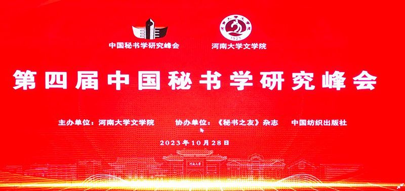 10月27日至29日,第四届中国秘书学研究峰会在河南大学召开。峰会由河南大学文学院主办,《秘书之友》杂志、中国纺织出版社协办。我校文学与传媒学院秘书学教研室主任、秘书学专业负责人郭征帆应邀参加了本届峰会,并主持了峰会小组交流。