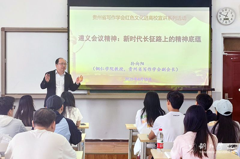 4月14日,我校开展了红色文化进校园宣讲活动。本次宣讲系贵州省写作学会2024年度贵州省社科联资助项目“红色文化与遵义会议精神在贵州发展中的影响与作用”的内容之一。我校教务处处长、文学与传媒学院院长、贵州省写作学会副会长孙向阳,文学与传媒学院秘书学教研室主任、贵州省写作学会铜仁联络处副主任郭征帆分别主讲。文学与传媒学院学生党员和入党积极分子代表、秘书学专业学生代表50余人参加了宣讲。