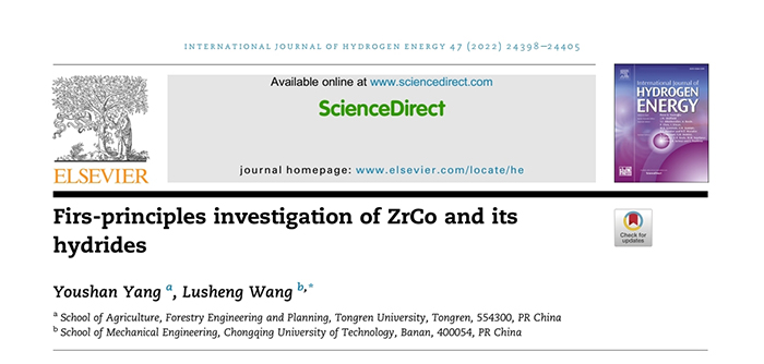 近日,我校杨友山老师在金属储氢领域取得了重要研究进展,相关成果以“ZrCo及其金属氢化物的第一性原理研究”为题发表在中国科学院2区期刊《国际氢能源》上。
