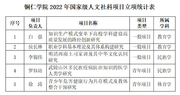 近日,全国哲学社会科学工作办公室公布了2022年国家社科基金立项名单,我校获批3项立项,其中一般项目1项、青年项目2项。此前,我校于今年8月份获得2项全国教育科学“十四五”规划国家一般项目立项。至此,我校今年共获得了5项国家级人文社科项目立项,立项数在我省市州高校中名列第一,也创下我校历史新高。