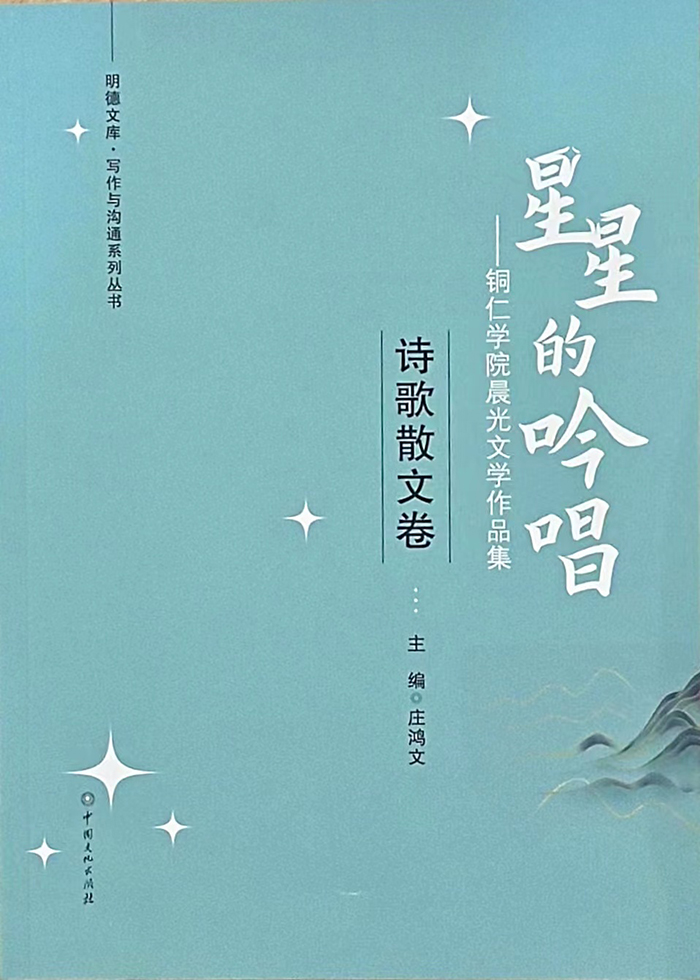 近日,由人文学院和写作研究院组织策划的《星星的吟唱——铜仁学院晨光文学作品集》与《边地文学与语言研究——铜仁学院学生学术成果选编》由中国文化出版社正式出版。这两本书不仅是铜仁学院“明德文库·写作与沟通系列丛书”之一,也是铜仁学院“三金”建设研究子项目“地域文化融入人才培养探索与实践”和贵州省高等学校教学内容和课程体系改革项目“新文科背景下卓越写作人才培养的创新与实践——以铜仁学院为例(2021308)”阶段性成果。