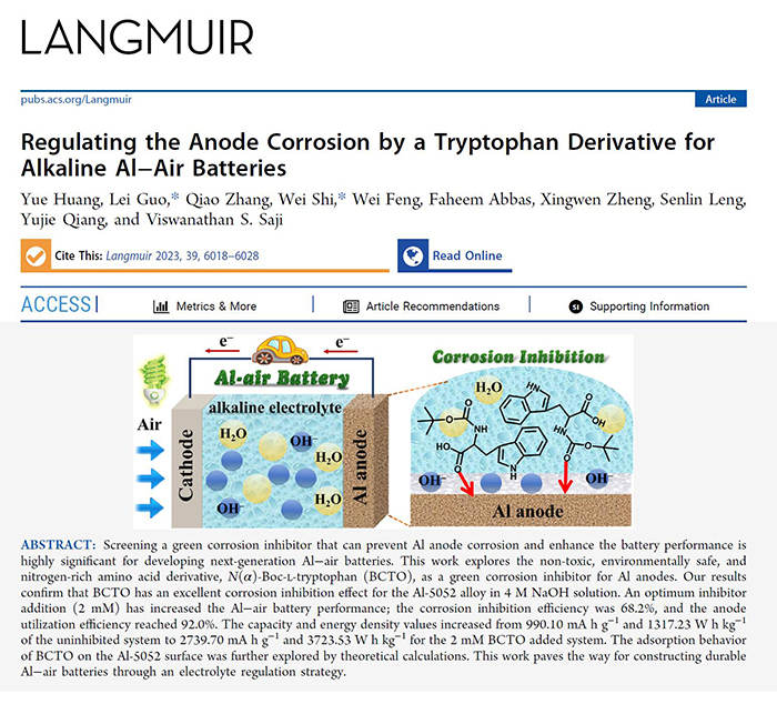 铝空气电池因其高能量密度、低经济成本、环境友好等特点被认为是面向二十一世纪的绿色能源。然而,金属铝阳极在强碱性电解液中易发生严重的自腐蚀现象,不仅会导致其放电容量大幅下降,产生的大量氢气亦会威胁电池安全,阻碍了其商业化应用。