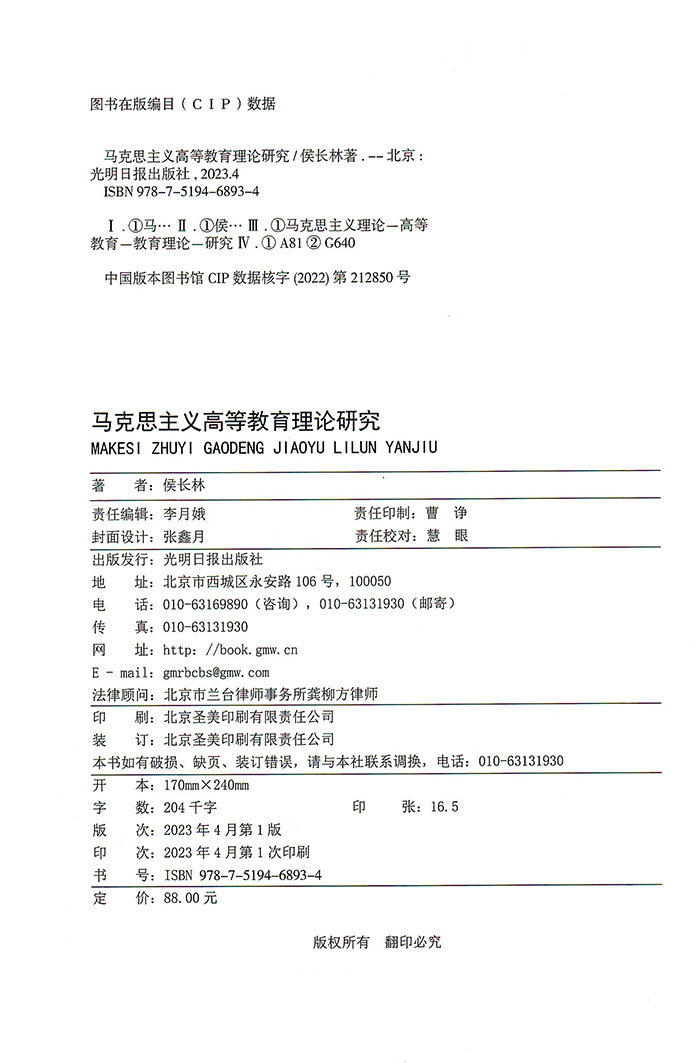 近日,我校二级教授、博士侯长林撰写的《马克思主义高等教育理论研究》一书由光明日报出版社正式出版发行。