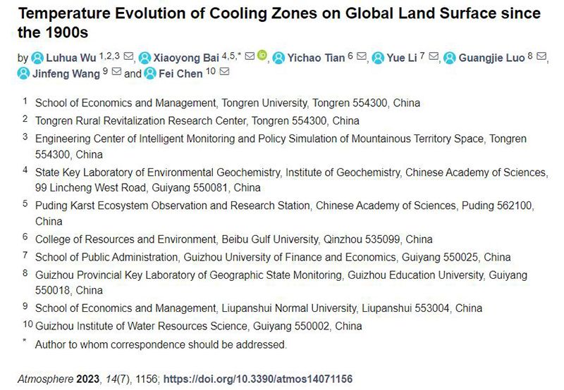 2023年7月,我校经济管理学院吴路华博士以第一作者在国际SCI期刊《Atmosphere》上,在线发表题为《Temperature evolution of cooling zones on global land surface since the 1900s》的学术论文(2023, 14(7), 1156:1-27;IF=3.11),揭示了百年以来变暖背景下全球陆地表面惊人的现象。