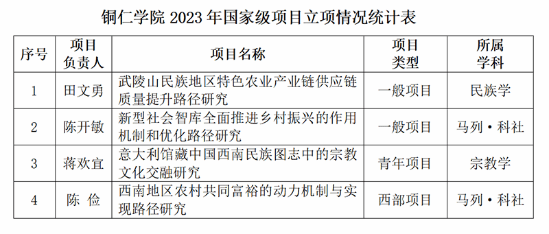 近日,全国哲学社会科学工作办公室公布了2023年国家社科基金项目立项名单。令人欣喜的是,我校在此次评审中获得了4项立项,创历史新高。其中包括2项一般项目、1项青年项目和1项西部项目,我校的立项数在全省市州高校中名列第一。