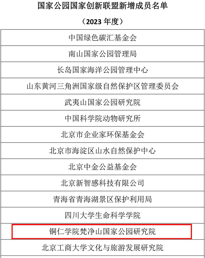 近日,国家公园国家创新联盟公布了新增成员名单,其中包括我校实体科研机构梵净山国家公园研究院。国家公园国家创新联盟由国家林业和草原局(国家公园管理局)主导成立,旨在促进从事国家公园规划设计、监测评估、研究咨询等科研院所、高等院校、企业以及国家公园和相关自然保护地管理单位的合作,实现国家公园产学研深度融合,并共同应对国家公园领域的全局性和战略性问题。目前,该联盟已有31个成员单位,其中包括3个发起单位,此次新增成员单位达到47家。我校梵净山国家公园研究院成为贵州省唯一加入该联盟的单位,这与我校长期以来对生态文明建设的高度重视以及取得的一系列具有重大影响力的成果密不可分。