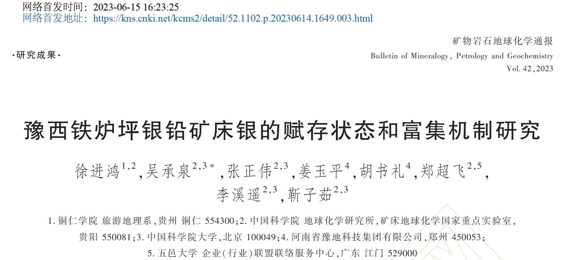 银作为具有良好柔韧性、延展性、感光性、导电性、导热性和抗菌性等物理化学特性的贵金属,一直是人类生产生活的重要组成部分。我国是全球最大的白银生产国和消费国,白银主要来源于铅锌矿的副产品,极少形成独立高品位银矿床。豫西作为我国主要银矿产地之一,发育数个大型高品位知名独立银矿。但有关这些矿床中银的赋存状态、成矿物质来源和矿床成因依旧存在较大争议。