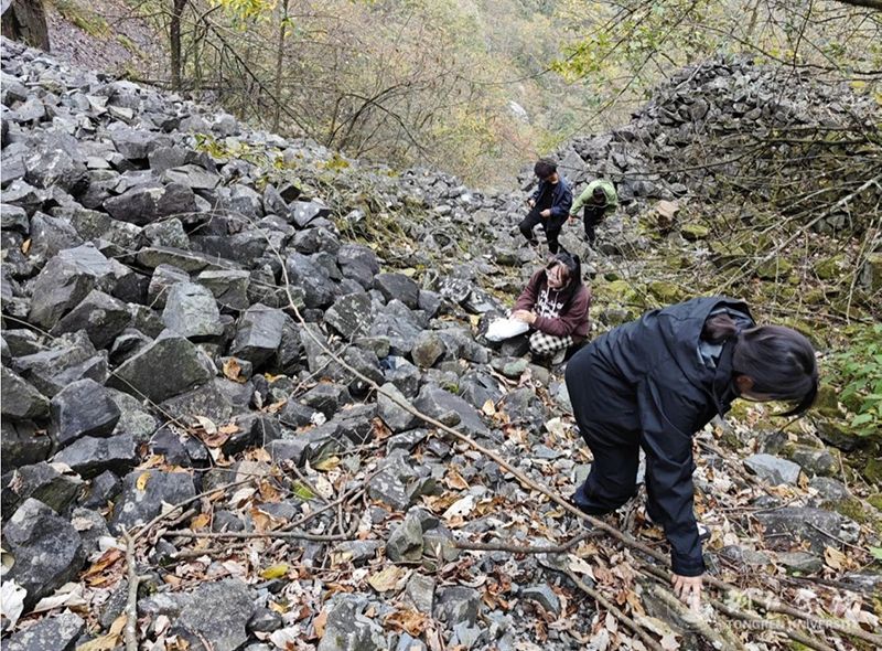 为此,我校梵净山国家公园研究院徐进鸿博士研究团队在铜仁市科技局博士人才项目和基础研究项目的支持下,与贵州梵净山国家级自然保护区管理局、铜仁市自然资源局、103地质队等单位开展合作,先后5次、历时11天、考察历程150公里,带领10余名地理科学专业本科生,深入梵净山西线核心区,克服了无信号、易迷路、道路阻绝等困难,完成了野外科学考察任务。本次研究共考察斑鸠井甲路组喀斯特不整合、平所芙蓉坝组底砾岩、肖家河白云母花岗岩、牛尾河枕状玄武岩等地质遗迹16处,系统采集野外地质、土壤等样品300余件。