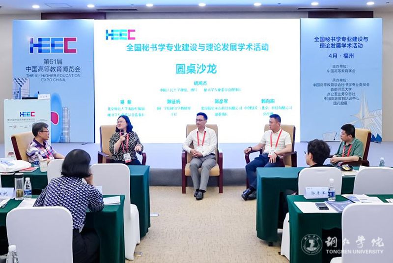 我校文学与传媒学院秘书学教研室主任郭征帆应邀作为博览会嘉宾,出席了开幕式和国秘书学专业建设与理论发展学术活动,并作主题交流发言。他在题为《学校政策引导,专业引力助学,学生引体向上——秘书学专业产教融合的铜仁学院实践》的发言中,介绍了铜仁学院秘书学专业落实学校“引社会服务之水,灌人才培养之田”产教融合育人政策,与铜仁市人民政府政务服务中心、中创慧文(北京)科技有限公司、北京方寸无忧科技有限公司等开展校政、校企合作,助力高素质秘书人才培养所取得的成绩和经验。中国高等教育学会秘书学专业委员会理事长胡鸿杰教授在主持交流发言时指出,铜仁学院秘书学专业产教融合的路径、举措特色鲜明,成绩突出,具有学习借鉴、推广应用的价值。