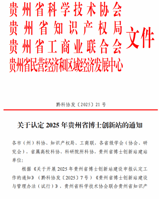 近日,贵州省科协、省知识产权局等四部门联合发布了2025年贵州省博士创新站认定名单。我校常军、吴路华两位博士分别与贵州大龙汇成新材料有限公司、贵州铜院科技发展有限公司联合组建的博士创新站成功入选。这两个创新站的建立,不仅搭建了产学研合作的新平台,更通过博士及其团队与企业间的深度合作,为当地产业升级和经济发展注入了新的动力。