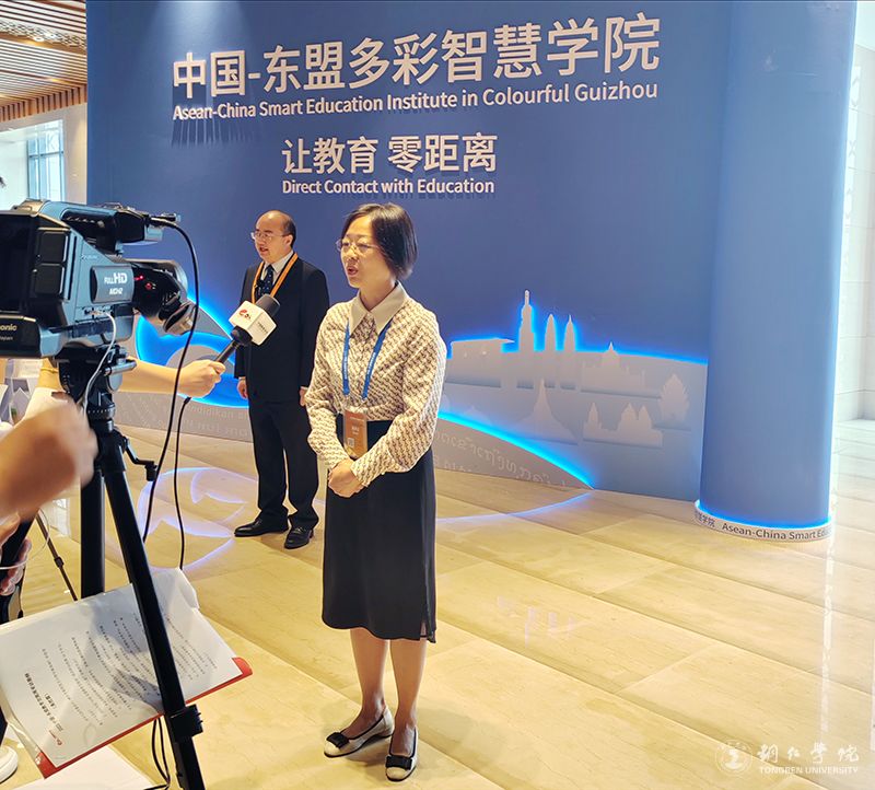 开幕式结束后,罗静受邀接受“中国-东盟教育交流周”新闻中心的采访。她在采访中谈到,铜仁学院是一所新建地方本科院校,我们的教育国际化经历了起步、发展、转型三个阶段。当前处于转型阶段,也就是说,对外交流合作进入了内涵发展阶段,要依托学科专业,与学科专业融合,让它扎下根来,也就是“在地国际化”。针对学校在对外交流合作过程中存在的问题,重点采取三个“引入”措施:一是引入国际学生资源营造国际化校园氛围;二是引入国际学术会议提升师生国际化参与能力;三是引入国际教学资源提高国际化人才培养质量。