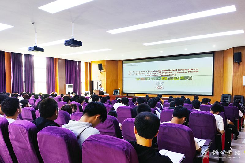 9月27日,欧洲自然科学院院士贵州大学特聘教授刘同先应邀来我校开展学术交流在博思楼101室作了题为《Exploring the Chemically Mediated Interactions among Plants, Foriegn Materials, Insects, Plants and Other Organisms》的学术讲座。我校副校长余乐正主持,全校近200名师生参加。