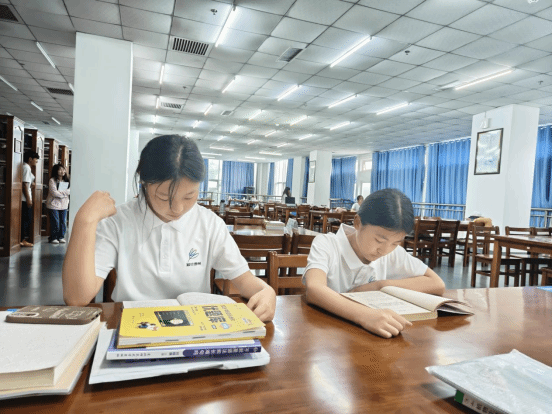 走进我校图书馆,孩子们被浩如烟海的藏书和静谧的阅读氛围所吸引。在图书馆志愿者的引导下,他们参观了图书阅览区、地方文献室和电子资源库,并体验了自助借阅系统。志愿者带着孩子们在图书馆进行了沉浸式阅提体验,鼓励他们“以书为友,点亮未来”。