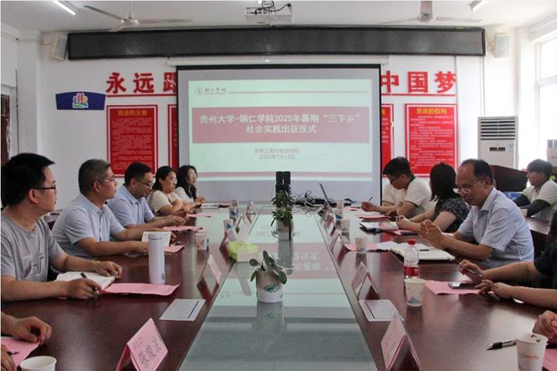 7月14日,贵州大学、铜仁学院、泰国兰实大学联合开展的2025年暑期“三下乡”社会实践活动出征仪式在我校农林工程与规划学院举行。贵州大学农学院党委书记冉龙彪以及相关教师,我校副校长潘学军,农林工程与规划学院党委书记李建新及相关教师,三所高校的实践队员参加仪式。农林工程与规划学院院长米小其主持出征仪式。