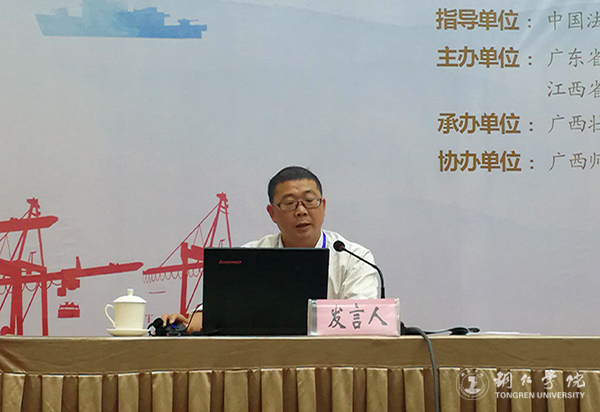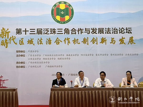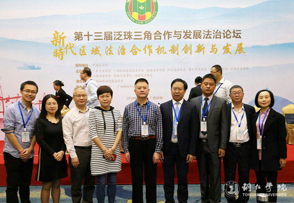 10月10日,由中国法学会指导的第十三届泛珠三角合作与发展法治论坛在广西桂林隆重举行,中国法学会党组成员、副会长王其江等出席了论坛。我校马克思主义学院皮坤乾教授、教育学院杨秀琴副教授应邀参会。皮坤乾教授在论坛上作了《用好遏制历史虚无主义的宪法武器》的主旨发言。