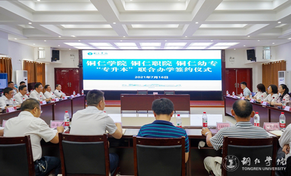 7月16日,我校与铜仁职业技术学院、铜仁幼儿师范高等专科学校在8501会议室举办了“专升本”联合办学签约仪式。我校副校长罗静;铜仁职院院长张命华、副院长晏龙强;铜仁幼专校长朱保贤,副校长杨会新、谭欧阳出席。各学校相关学院及部门负责人参加了仪式。签约仪式由我校招生与就业指导处处长杨艳主持。