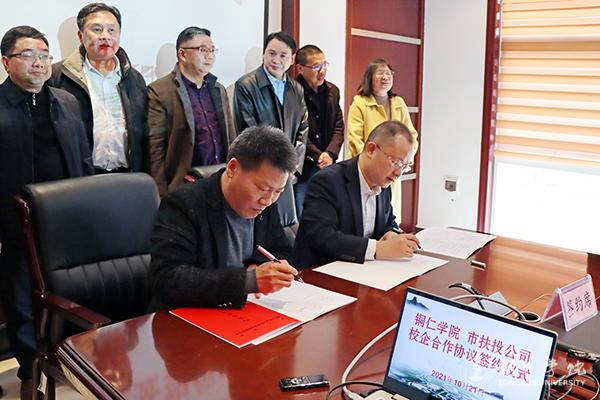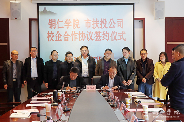 10月21日上午,我校与铜仁市扶贫开发投资有限责任公司在行政楼8312会议室举行校企合作签约仪式。我校副校长石维,铜仁市扶投公司董事长姚元贵及相关人员,铜仁市科技局副局长杨黎波,我校农林工程与规划学院党委书记李建新,科研处副处长周刚,发展规划处副处长舒小平,农林工程与规划学院科研团队成员参加仪式。仪式由周刚主持。