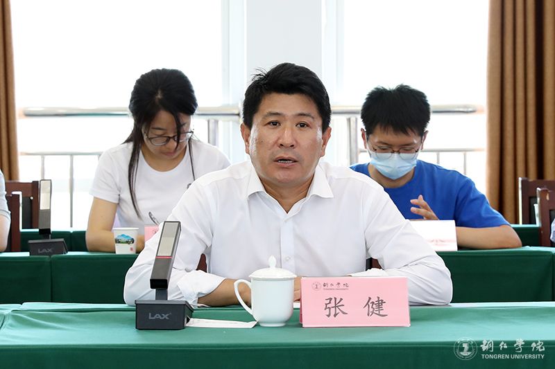 座谈会上,杨建首先对张健一行的来访表示欢迎,同时简要介绍了我校基本情况,并希望在办学上得到清华大学气候变化与可持续发展研究院的帮助与支持。随后,聂蔚琳介绍了此次考察组来访情况;清华大学气候变化与可持续发展研究院数字生态国际创新基地(Climatex实践基地)执行主任谢宗旭介绍了研究院情况以及有关工作开展情况。最后,张健就推动双方合作提出意见建议,表示要不断深化合作交流,实现互利共赢。会上,张健向杨建授予“数字生态国际创新基地(Climate x实践基地)”牌匾并合影留念。