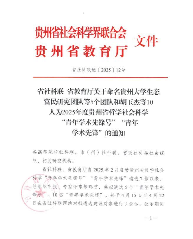 “青年学术先锋号”是贵州省为推进哲学社会科学“两工程一体系”建设的重要举措,由省社科联、省教育厅联合组织遴选,实行三年动态管理机制,每个周期末需接受严格评估。此次评选通过多轮竞争性评审,凸显入选团队的综合实力,充分彰显了其在区域文化研究领域的学术影响力。